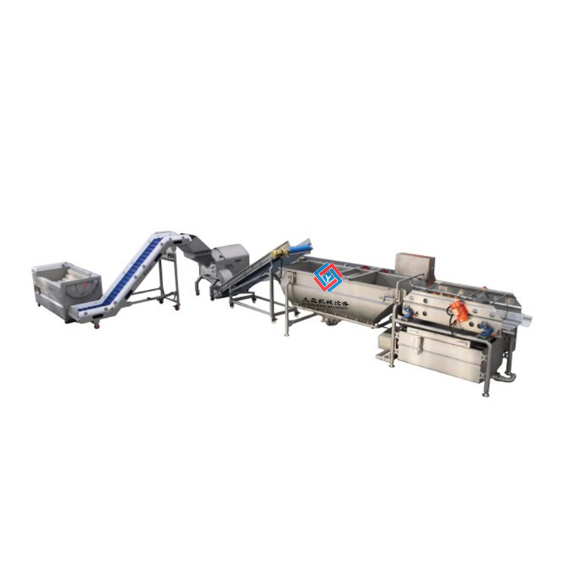 1.根莖類的蔬菜需要先進行毛輥清洗干凈之后去品,然后浸入氣泡清洗劑洗凈之后進入到下一個工序。